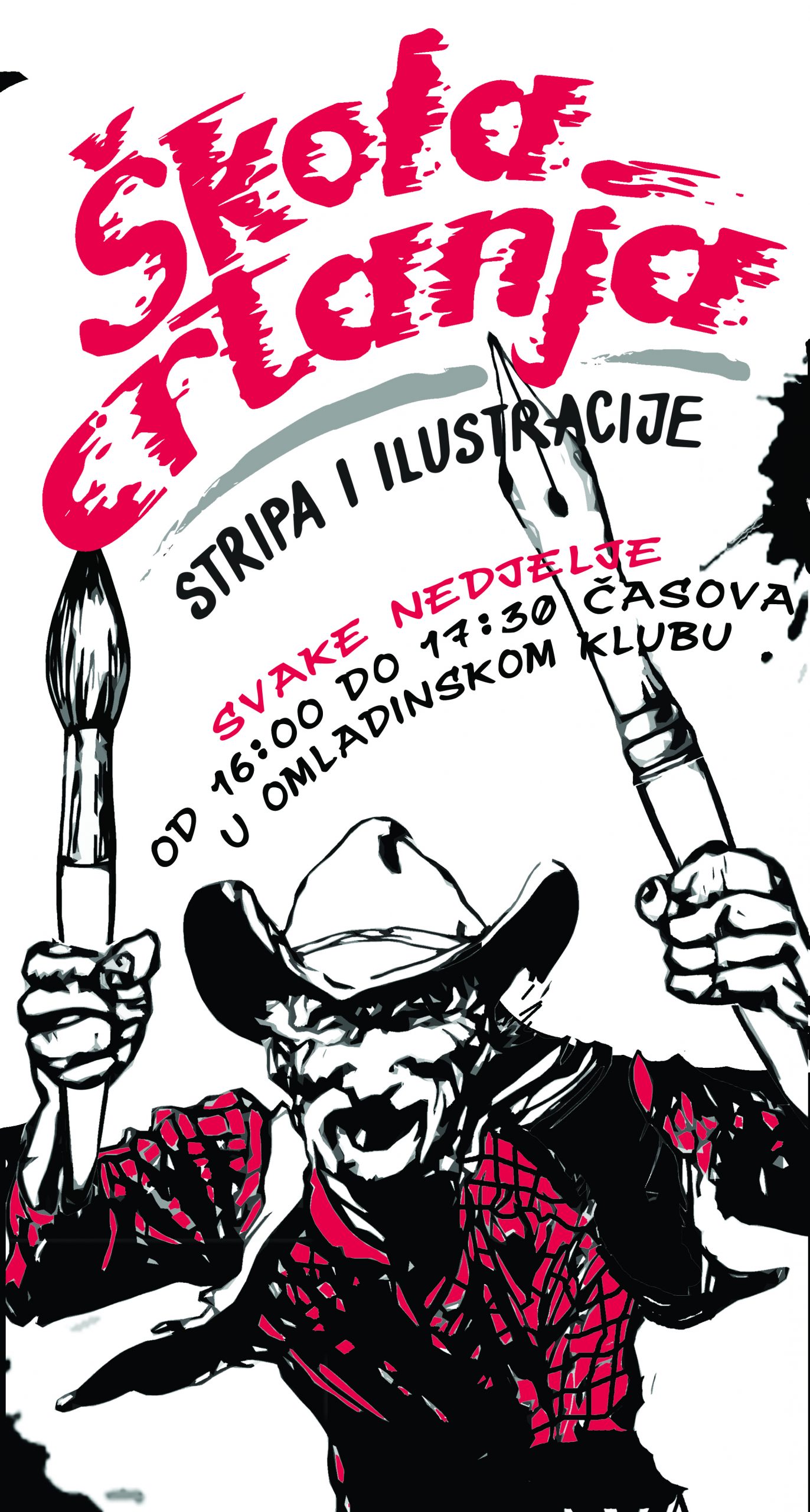 Škola crtanja stripa i ilustracije i ove godine Radionica se održava u prostorijama Omladinskog kluba (adresa) svake nedjelje tokom školske godine od 16:00 do 17:30 časova. Prvi termin je zakazan za 5. oktobar. Od materijala za crtanje dovoljno je donijeti