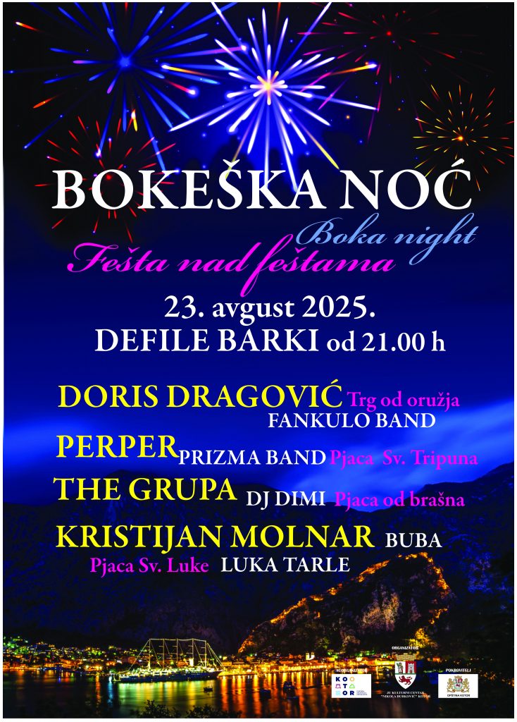Kotor se i ove godine sprema za najradosniju i najšareniju ljetnju manifestaciju – Bokešku noć, kulturno-umjetnički spektakl koji nosi status nematerijalnog kulturnog dobra od nacionalnog značaja. U subotu, 23. avgusta, sa početkom u 21 sat, Kotorski zaliv i Stari grad […]