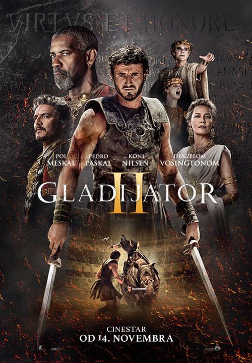Legendarni reditelj, Ridli Skot, predstavlja nam svoj najnoviji film, „GLADIJATOR II“, nastavak epske sage o moći, intrigama i osveti, čija je radnja smještena u drevnom Rimu. Nakon mnogo godina od trenutka kada je prisustvovao ubistvu odlikovanog junaka Maksimusa, koga je ubio njegov ujak, Lucije (Pol Meskal) je primoran da uđe u Koloseum. Njegov dom pokorio je imperator – tiranin, koji sada gvozdenom pesnicom upravlja Rimom. Sa gnijevom u srcu, dok je budućnost Rima dovedena u pitanje, Lucije će morati da se osvrne ka svojoj prošlosti kako bi našao snagu i čast i kako bi vratio slavu Rimu i njegovom narodu.
