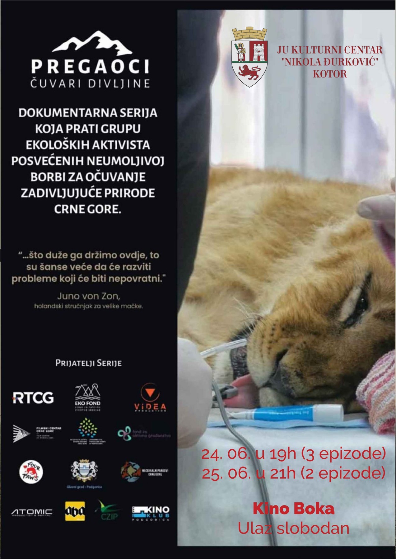 Mreža kinoprikazivača Crne Gore nastavlja sa svojim redovnim aktivnostima – ovog puta publika će biti u prilici da pogleda dokumentarni serijal „Pregaoci – Čuvari divljine“ reditelja Mladena Ivanovića.