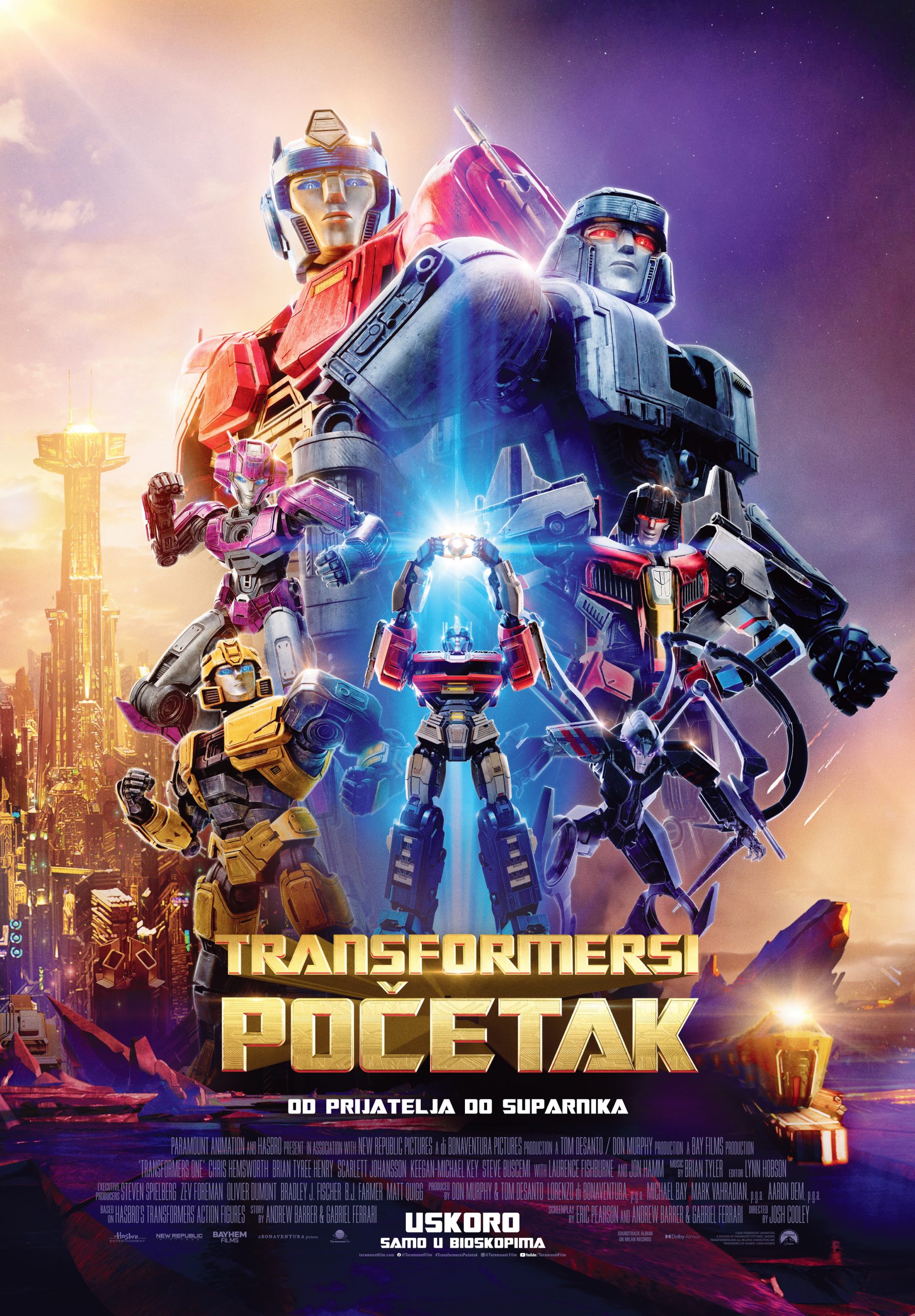 TRANSFORMERSI – POČETAK“ je neispričana priča o porijeklu Optimusa Prajma i Megatrona, zakletih neprijatelja, koji su nekada bili prijatelji, povezani kao braća, koji su zauvijek promjenili sudbinu Sajbertrona. U prvom ikada potpuno CG animiranom filmu o Transformersima, glasove su pozajmili neki od najvećih glumačkih zvijezda, među kojima su Kris Hemsvort, Brajan Tajri Henri, Skarlet Džohanson, Kigan-Majkli Ki, Stiv Bušemi, Lorens Fišburn i Džon Ham.